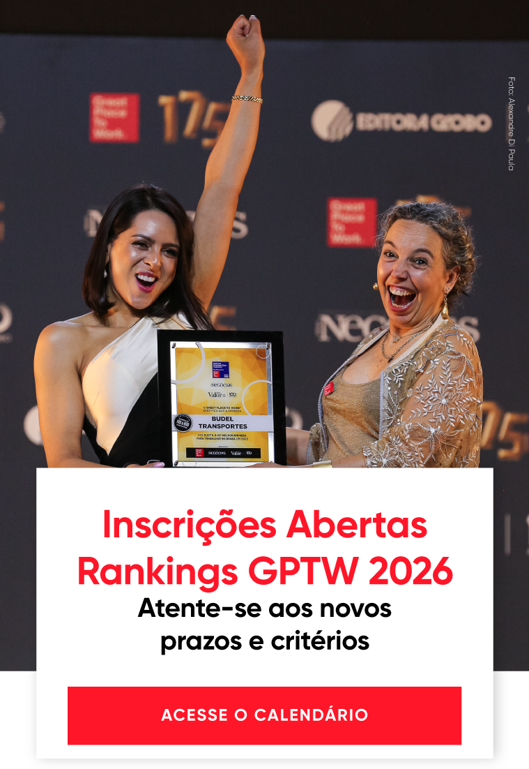 O Great Place To Work® apoia organizações a obterem melhores resultados por meio de uma cultura de confiança, alto desempenho e inovação. Com a nossa plataforma e metodologia de pesquisa, certificamos e premiamos as empresas que prezam por excelência em suas culturas e ambientes de trabalho.