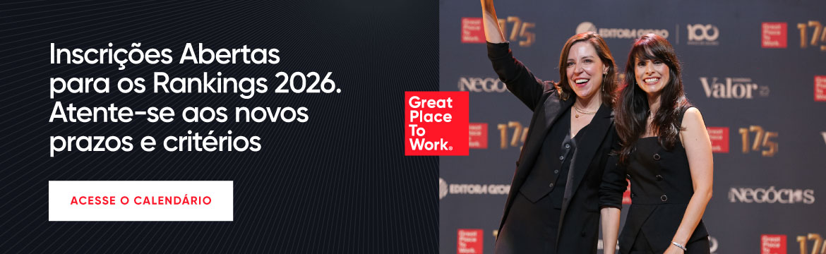 O Great Place To Work® apoia organizações a obterem melhores resultados por meio de uma cultura de confiança, alto desempenho e inovação. Com a nossa plataforma e metodologia de pesquisa, certificamos e premiamos as empresas que prezam por excelência em suas culturas e ambientes de trabalho.